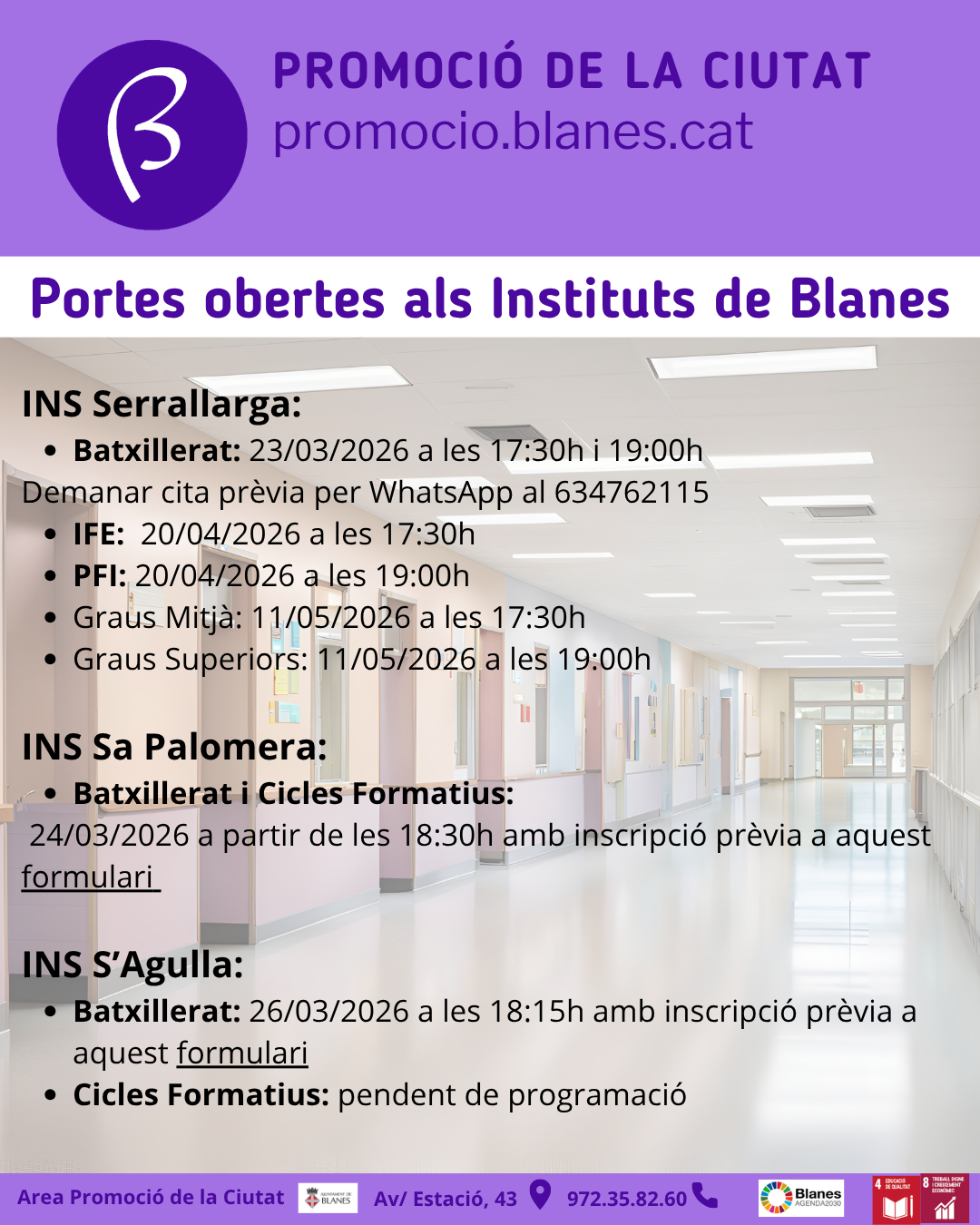 Els Instituts de Blanes obren les portes a futurs estudiants i famílies per tal que puguin conèixer l’oferta formativa que