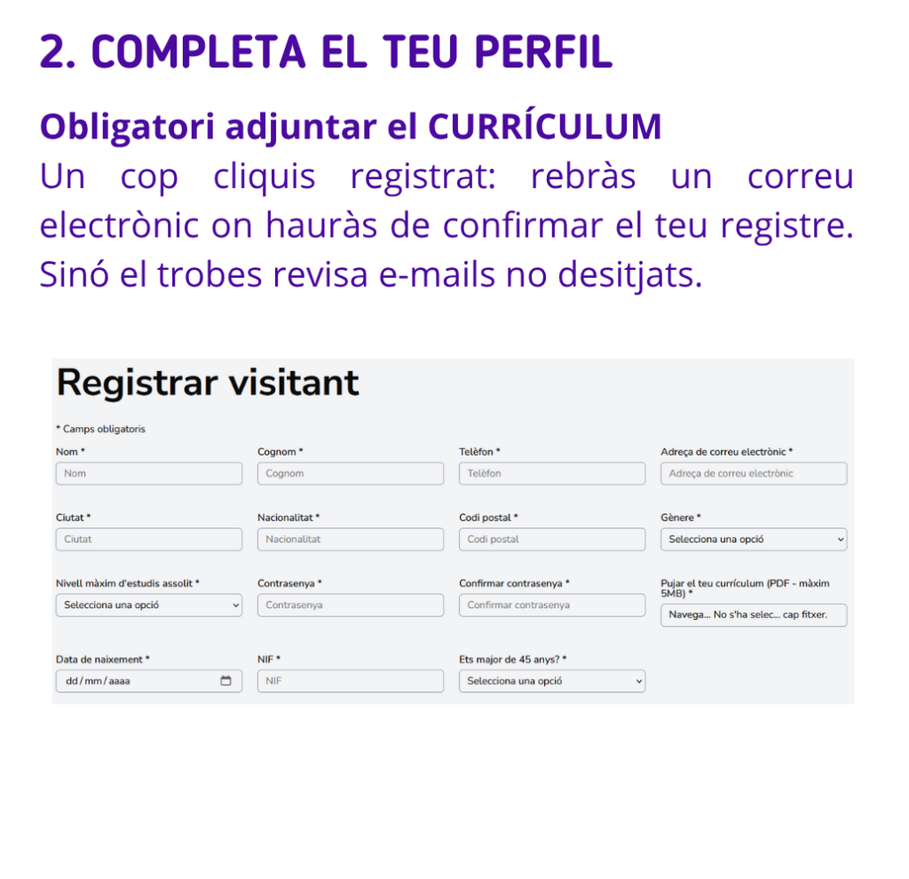 A continuació us expliquem les indicacions que has de seguir per fer la inscripció a la Fira d’Ocupació:
