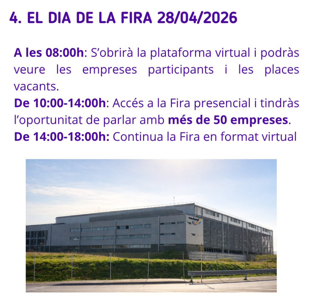 -A les 08:00h: S’obrirà la plataforma virtual i podràs veure les empreses participants i les places vacants.